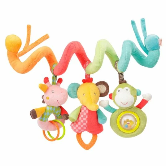 The Activity Spiral Safari from Baby Fehn is fun to play with when you’re out and about with your offspring. You can simply attach them to the carrying handle of your baby car seat and the funny figures will dance in the air directly above your child. The soft and cheerful play figures stimulate to grasp, play and discover. There is a small rattle, a structured biting surface for pain relief in the teeth phase and two gripping rings to discover.