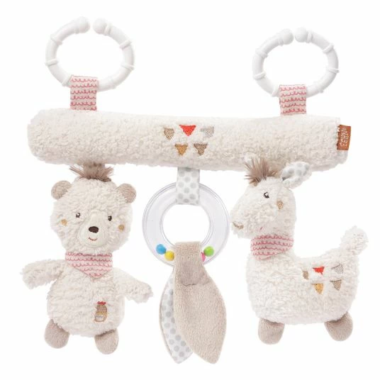 Vielseitiger Spielspaß ist mit dem Activity-Trapez Peru garantiert! Die Tierstimme im Lama, das Raschelpapier in den Blättern sowie die Quietsche im Bär laden zusätzlich mit kuscheligen Materialien zum Greifen und Fühlen ein, wecken Babys Neugier & fördern erste Hand-Auge-Koordination. Schnell an Babyschale, Kinderwagen, Bettchen oder Laufgitter befestigt – damit wird jedes Abenteuer zum Erlebnis und keine Fahrt langweilig!