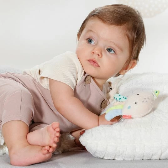 Der sΓΌΓe Oktopus lΓ€dt zum Greifen und Bewegen ein, wΓ€hrend die GerΓ€usche der Rassel und der Quietsche das GehΓΆr des jungen Entdeckers schulen. Der Greifling lΓ€sst sich von kleinen KinderhΓ€nden sehr gut halten und ist mit seiner praktischen GrΓΆΓe von 14 cm auch unterwegs eine tolle BeschΓ€ftigung fΓΌr Dein Baby. Die weichen Stoffe liegen dabei sehr angenehm in der Hand, die bunten FΓΌΓchen animieren zum Tasten und FΓΌhlen. Die niedliche Gestaltung macht das Spielzeug zu einer tollen Geschenkidee.