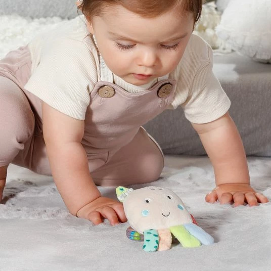 Umso mehr Babys sich weiterentwickeln, umso mehr mΓΆchten sie ihre Umgebung und GegenstΓ€nde genauer auskundschaften. HierfΓΌr mΓΌssen sie ihre Muskeln trainieren, das Greifen lernen und ihre Koordination schulen. Um sich darin zu ΓΌben, ist die Fehn Ring-Rassel Oktopus ideal geeignet. Mit dem kleinen Meeresbewohner kann Dein Schatz seine motorischen FΓ€higkeiten, seine Wahrnehmung und seine Auge-Hand-Koordination auf spielerische Weise fΓΆrdern.