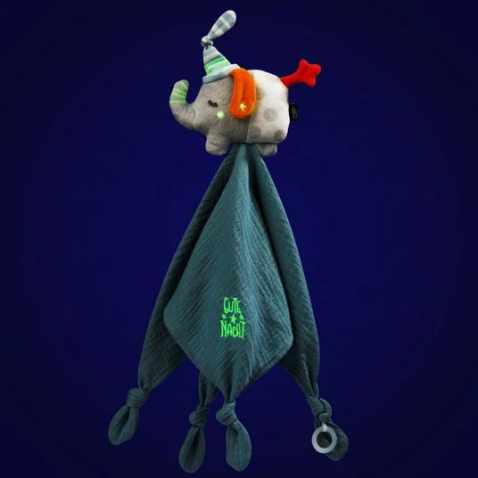 Sobald die kleinen Babyhändchen dazu in der Lage sind, greifen sie gerne nach einem Tuch zum Kuscheln. Besonders in stressigen Situationen gibt ihnen ein Schnuffeltuch mehr Sicherheit. Das Fehn Schmusetuch Elefant ist ein flauschiger, treuer Begleiter für jede Alltagssituation, den Dein Nachwuchs immer bei sich haben kann. Der Elefant ist mit Elementen ausgestattet, die im Dunkeln leuchten. So fühlt sich Dein kleiner Engel beim Einschlafen noch geborgener.