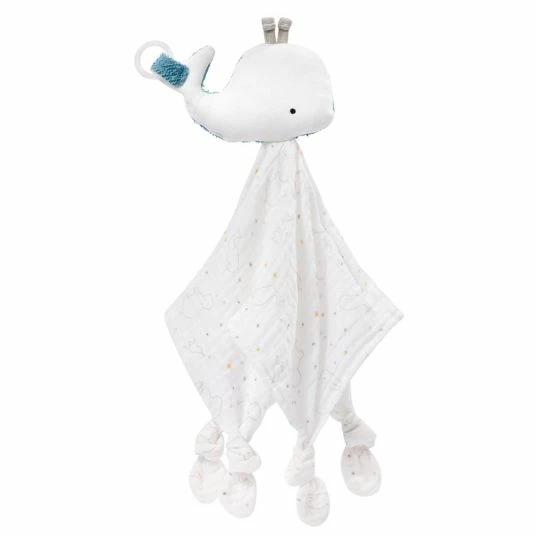 Das bezaubernde Schmusetuch Wal aus der fehnNATUR® Kollektion ist Tröster, Wärmespender, Einschlafhelfer und Kuschelfreund in einem und dabei Babys treuer Begleiter zuhause und auf Reisen. Beim Einschlafen spendet der Kuschel-Wal Geborgenheit. Tagsüber laden die nachhaltigen Materialien aus 100% Bio-Baumwolle aus kontrolliertem und zertifiziertem Anbau sowie die Füllung aus 100% bio-basierten PLA-Fasern aus nachwachsenden Rohstoffen zum Greifen, Fühlen und Knuddeln ein, sodass der niedliche Wal bald nicht mehr aus der Hand gegeben wird. Der praktische Befestigungsring am Stoff-Wal sorgt dafür, dass Babys Schnuller auf großen Abenteuern nicht verloren geht.