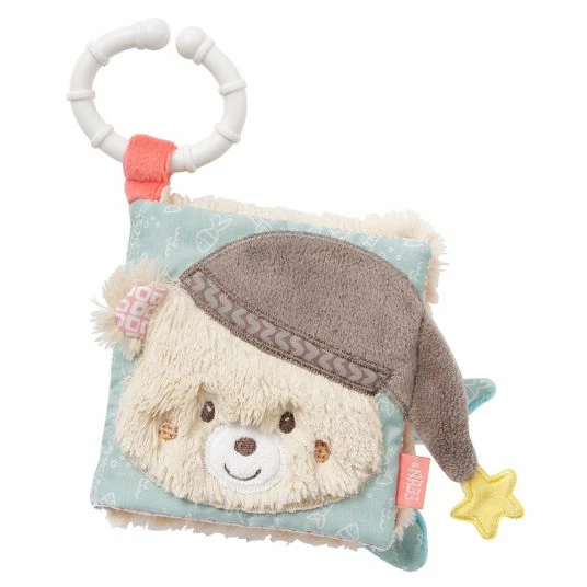 Hier gibt es einiges zu entdecken! Kuschelweiche, abwechslungsreiche Materialien und sanfte, harmonische Farben machen das Soft-Bilderbuch von Baby Fehn aus der Bruno Kollektion zu einem echten Hingucker. Der flauschige Bär auf der Titelseite lädt zum Entdecken, Forschen und Fühlen ein. Einfache Formen wir Mond, Wolke, Fisch und Welle werden dem Nachwuchs schnell bekannt vorkommen. Die friedlich schlafende Wolke, der außergewöhnliche Sägefisch und die große blaue Welle sind immer für eine Überraschung gut. Eine verborgene Quietsche, Raschelpapier und verschiedene Strukturen der Oberflächen wecken die Neugier und fördern den Tastsinn. Der kleine Spiegel trägt positiv zur Selbsterkennung bei. Mit dem C-Ring ist das Soft-Bilderbuch Bruno ganz leicht und sicher an Babyschale und Kinderwagen befestigt. Kleine Entdecker werden es lieben auch unterwegs auf Entdeckungstour zu gehen.