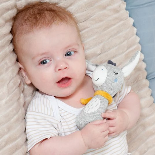 Der sΓΌΓe Esel lΓ€dt zum Tasten, FΓΌhlen und Betrachten ein, wΓ€hrend die Rassel im Inneren zu Bewegungen motiviert. Er lΓ€sst sich von kleinen KinderhΓ€nden dank der praktischen Form sehr gut halten und ist auch unterwegs eine tolle BeschΓ€ftigung fΓΌr Dein Baby. Die weichen Stoffe liegen dabei sehr angenehm in der Hand. Die niedliche Gestaltung macht das Spielzeug zu einem schΓΆnen Hingucker in der Babyausstattung und einer tollen Geschenkidee.