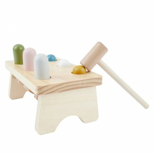 Da die Stifte mit unterschiedlichen Farben bemalt sind, eignet sich die Hammerbank auch sehr gut, um diese spielerisch kennenzulernen. Das robuste Holz macht die Bank zu einem langlebigen Spielzeug.