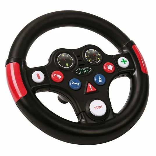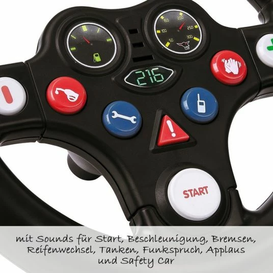 Das Bobby Car Racing-Sound-Wheel von BIG sorgt für noch mehr gute Laune beim Bobby-Car-Fahren. Das Lenkrad passt auf alle Bobby Car New und Classic Modelle von BIG und punktet mit tollen Geräusch-und Tonfunktionen. Da gibt es Sounds für den Start, die Beschleunigung und das Herunterbremsen. Ihr kleiner Rennfahrer kann außerdem Geräusche für den Reifenwechsel, das Tanken, Safety Car und den Applaus abspielen. Selbst ein Funkspruch lässt sich einstellen! So macht jede Fahrt Spaß!