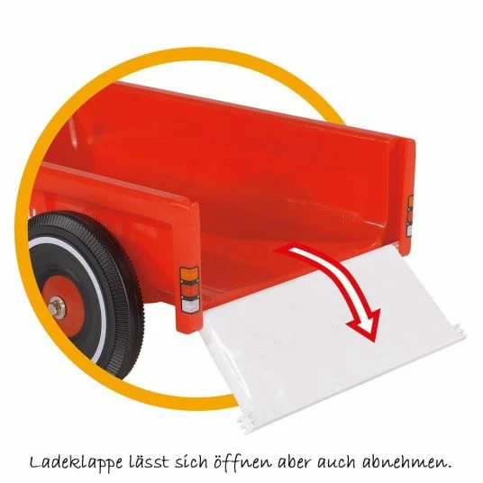A real must for your little Bobby Car owner is the bright red Bobby Car Caddy from BIG. With its extra large loading area, it is a real space miracle; its loading volume is approx. 8 litres. This enables the little drivers not only to transport toys, but also to drive the water tank or heavy shopping bags home while shopping. With the proven plastic tyres for good grip, your little treasure can start its excursions everywhere, even in the apartment. It can easily be attached to the trailer coupling of the Bobby Cars and Baby Movers front or rear with the included safety coupling pin. For long and bulky loads, the loading flap of the Bobby Caddy can be easily removed. The maximum total load capacity is 25 kg.
