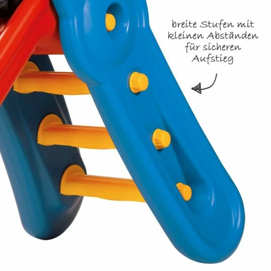 With its attractive, non-tilting shape and cheerfully fresh colours, the BIG-FUN-SLIDE brings a good mood into your home or garden. With a slip length of 152 cm, the BIG-FUN-SLIDE is the ideal toy for little slip fans aged 3 and over. Especially wide steps and small distances between the steps as well as a handy handrail simplify the ascent. The high side bolsters provide good support during the slide. The height of the BIG-FUN-SLIDE and thus the angle of inclination can also be adjusted twice in just a few simple steps.