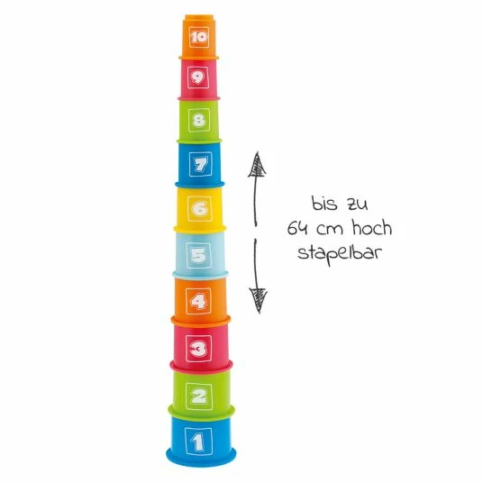 Das Stapelspiel Zahlenturm von Chicco weckt SpaΓ am Turmbau und trainiert die Hand-Augen-Koordination Deines Kindes. Die Becher sind kunterbunt und mit Zahlen von 1 bis 10 bedruckt. So lernt Dein Schatz die verschiedenen Farben und erste Zahlen spielend kennen. Ob ineinander gestapelt, als Turm zusammengebaut oder einfach zum Sandspielen und Plantschen – diese 10 Stapelbecher gehΓΆren fΓΌr kleine Baumeister zur Grundausstattung!