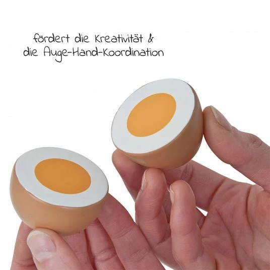 Vom FrΓΌhstΓΌcksei ΓΌber belegte BrΓΆtchen bis hin zur Backzutat fΓΌr einen selbstgebackenen Kuchen – mit den 6 enthaltenen Eiern kann sich Dein kleiner Koch nach Herzenslust austoben. Sehr praktisch: Die Holzeier sind mit Hilfe eines Magneten leicht zerteil- und wieder zusammensetzbar und kΓΆnnen beliebig oft in die Schachtel zurΓΌckgelegt werden. Durch die Interaktion mit Freunden und der Familie werden die Geschicklichkeit, Feinmotorik und KreativitΓ€t geschult.
