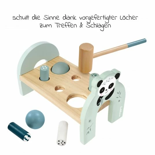 Du suchst ein besonderes Highlight fΓΌr das Kinderzimmer, bei dem langanhaltender SpielspaΓ garantiert ist? Mit der Eichhorn Klopfbank 8-tlg. – Panda mit hellen Farben im skandinavischen Stil kann sich Dein kleiner Baumeister jederzeit kreativ austoben. Das Set besteht aus einer Klopfbank, 6 Stiften und Kugeln in unterschiedlichen Farben und Formen, die durch die LΓΆcher geschlagen werden.