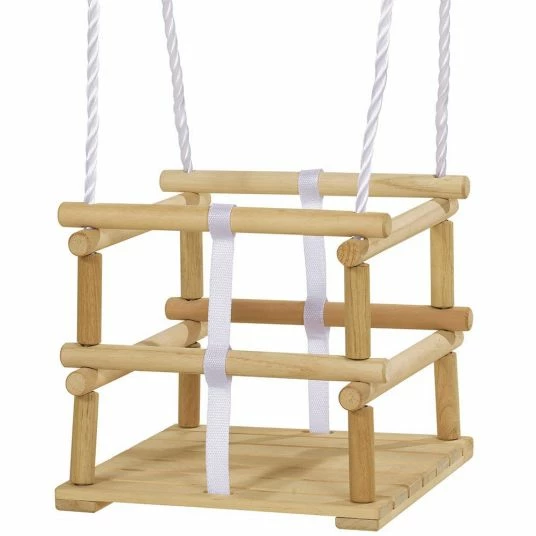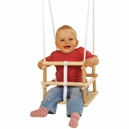 With the Eichhorn lattice swing, even the smallest children can enjoy swinging. The lattice swing made of sturdy birch wood is suitable for children who can already sit independently (up to 20 kg). Thanks to the all-round bars and anti-slip crotch protection, your treasure always sits securely.