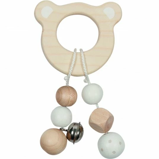 Der Greifling – Bärenkopf von Goki stimuliert die Sinne Deines Babys. Dank der zwei unterschiedlichen Formen – Perlen und Bärenkopf – wird der Tastsinn gefördert. Für die jungen Ohren ist das Klingeln des Glöckchens besonders interessant. Das Spielen, Anfassen und Drehen des Greiflings schult die Feinmotorik.