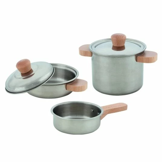 Für noch mehr Spaß in der Kinderküche! Mit dem Goki Küchenzubehör 5tlg. Kochset Sterneküche kann sich Dein kleiner Schatz spielerisch als kleiner Koch üben. Die Interaktion mit Freunden und der Familie schulen die Geschicklichkeit und Kreativität. Dein Kind kann mit den beiden Töpfen samt Deckel sowie einer Pfanne mit längerem Holzgriff verschiedenste Gerichte zubereiten – ganz wie die Mama oder der Papa. Die perfekte Ergänzung für die Kinderküche und ein Muss für jahrelange Rollenspiele.