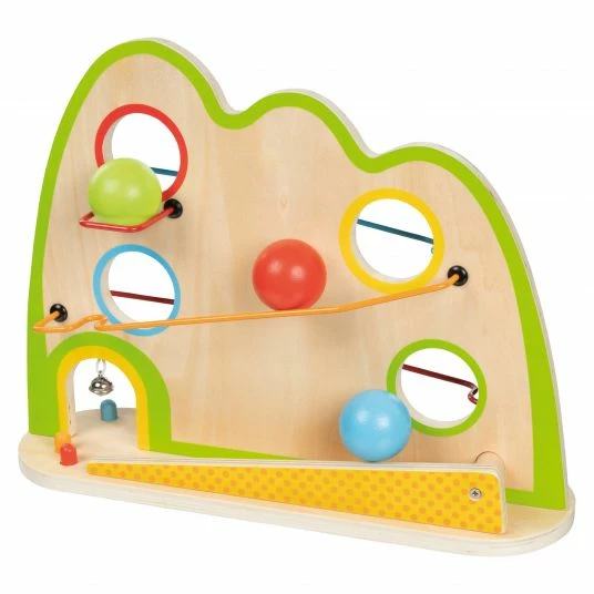 Mit der Goki Kugelbahn Seitenwechsel erlebt Dein Kleines Förderung und Spielspaß in Einem: Es kann die 3 Kugeln in unterschiedlichen Farben einzeln oder gleichzeitig selbst zum Rollen bringen. Damit die Kugeln auch alle richtig auf der Rollbahn aufgesetzt werden, ist etwas Fingerspitzengefühl notwendig. So kann der kleine Entdecker seine Feinmotorik trainieren und konzentriert beobachten, wie die Kugeln mit Seitenwechseln durch die Löcher flitzen.