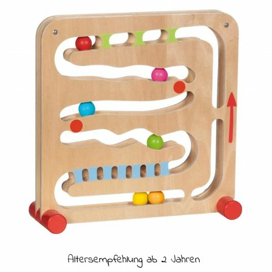 Mit der Goki Kugelbahn erlebt Dein Kleines Fรถrderung und Spielspaร in Einem: Es kann die 6 Holzkugeln in unterschiedlichen Farben mit dem โFingerfahrstuhlโ nach oben schieben und dann zum Rollen bringen. So kann der kleine Entdecker seine Feinmotorik trainieren und konzentriert beobachten, wie die Kugeln mit Seitenwechseln รผber die Rampen flitzen.