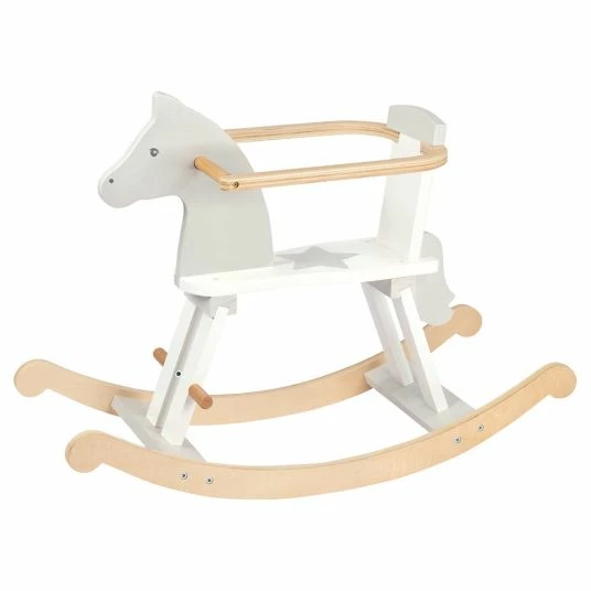 Das Schaukelpferd von goki ist ein echter Klassiker im Kinderzimmer. Auf dem Sitz mit abgerundeten Kanten kann Dein kleiner Schatz seinen abenteuerlichen Ausritt beginnen. Ein Schutzring, die Rückenlehne; runde Haltegriffe und Fußablagen sorgen für Komfort und die nötige Sicherheit. Wenn Dein Kind sicher auf dem Schaukelpferd sitzen kann, lässt sich der Schutzring abschrauben. Dieses zeitlose Holzspielzeug wird Deinem Kind sicherlich viele fröhliche Spielstunden bescheren.
