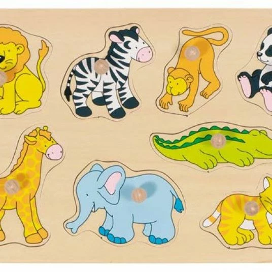 Bei einem Steckpuzzle lassen sich alle einzelnen Elemente des Motivs herausnehmen und einsetzen. Mit den groรen Holzknรถpfen gelingen auch die ersten Puzzleversuche. So kann Ihr kleiner Liebling wรคhrend des Puzzelns mit Ihrer Hilfe erste Begriffe lernen. Besonders hรผbsch ist das Steckpuzzle โZootiere.โ von Gollnest & Kiesel.