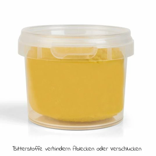 Die dafür verwendeten, pflanzlichen Pigmente sind in Lebensmittelqualität. Die Knetmasse wurde nach der Spielzeugnorm Spielzeugnorm DIN EN 71 geprüft. Ein enthaltener Bitterstoff sorgt dafür, dass die Knete nicht von Deinem Kind abgeleckt oder verschluckt werden kann. Bitte beachte vor der Verwendung die Sicherheitshinweise des Herstellers.