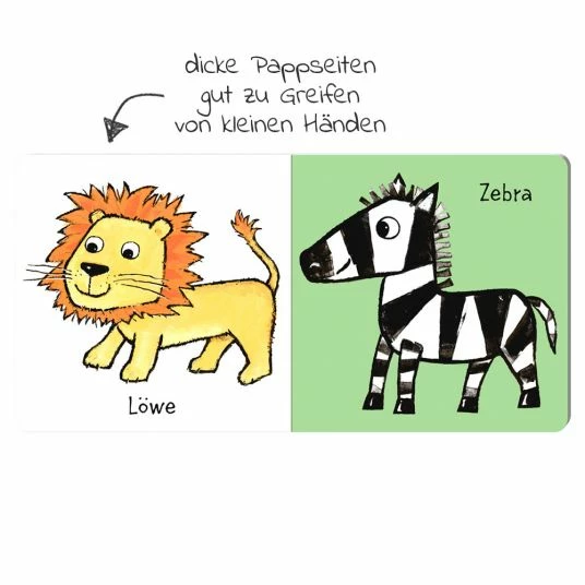 Die Zeichnungen sind dabei sehr einfach gehalten und ideal fΓΌr kleine Kinder ab 12 Monaten gestaltet. Zu jeder Tier-Zeichnung ist auch immer das richtige Wort mit dabei. Durch die einfache Gestaltung bietet das Buch jede Menge Platz fΓΌr eure Fantasie und eure Geschichten rund um die Tiere, die von Dir erzΓ€hlt werden wollen. So wird die Sprache Deines kleinen Engels auf ganz spielerische Weise gefΓΆrdert. Das Buch besteht aus robuster Pappe, die Dein Kleines bedenkenlos in die HΓ€nde nehmen kann.