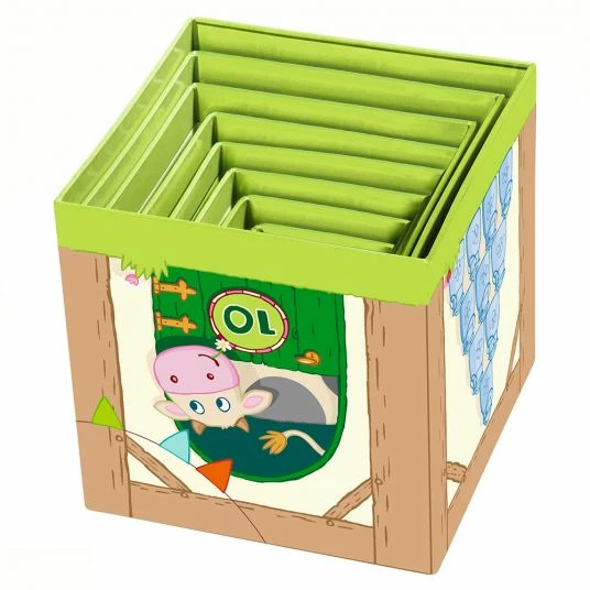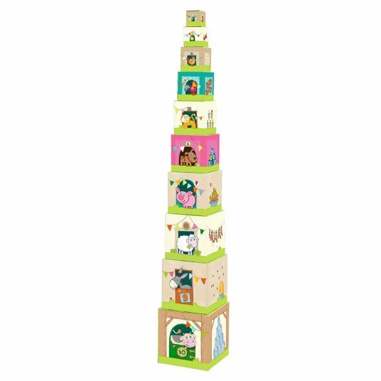 The Stacking boards XXL – On the land from Haba can be stacked to a gigantic tower or plugged into each other as a plug-in game. Besides you can get to know 10 different animals of a farm, learn how to pick them up and how to recognize colours.