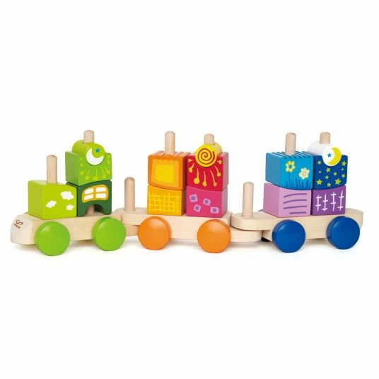 Tuuuut tuuuut – hier kommt der Hape Eisenbahn beladen mit farbenfrohen Bausteinen durch das Zimmer des kleinen Lokführers gefahren. Als Klassiker darf diese bunte Lokomotive in fröhlicher Musterung nicht fehlen. Ob als Lokführer oder als Fahrgast – mit der niedlichen 17-teiligen Lok mit 2 Wagons sind der Fantasie für spannende Rollenspiele und jede Menge Fahrspaß keine Grenzen gesetzt.