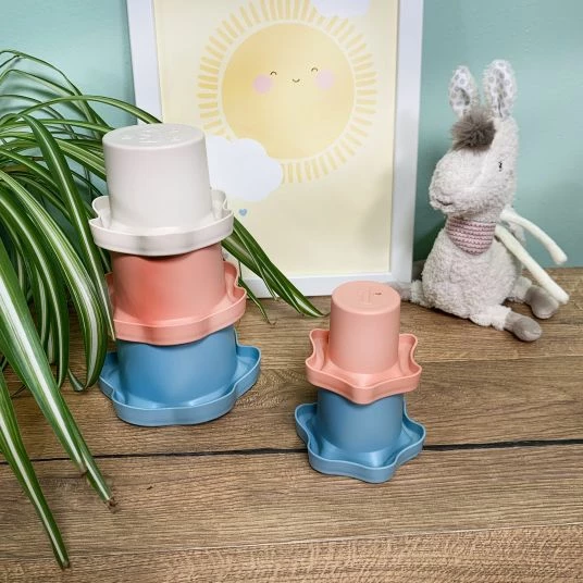 Mit den Spielbecher play green von Nip hat Dein kleiner Baumeister blumenförmige Becher, die alle der richtigen Größe nach zu einem großen Regenbogen-Turm gestapelt oder ineinander gesteckt werden wollen. Dank der zauberhaften Farben macht das ganz besonders viel Spaß. Doch auch im Wasser oder am Strand mit Sand bereiten die Spielbecher Deinem Weltentdecker viel Freude.