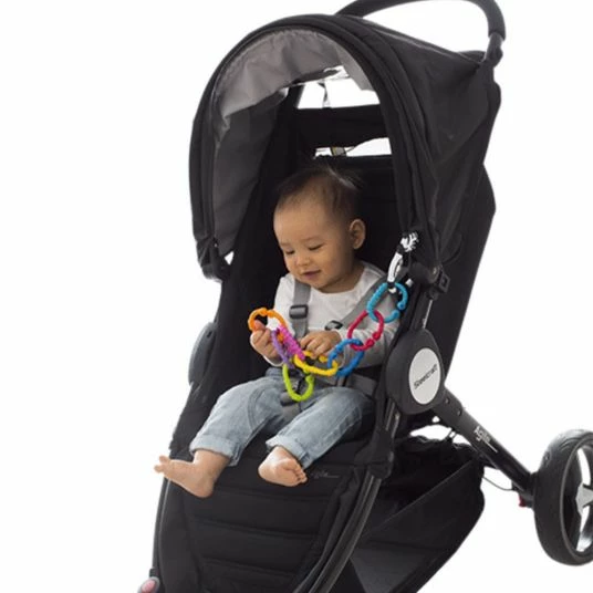 Die 3-in-1 Beißring-Rasselkette von Playgro ist ein praktisches und vielseitiges Spielzeug. Die strukturierten Ringe massieren sanft das Zahnfleisch Ihres Babys und lindern so den Zahnungsschmerz. Sie sind zudem flexibel, lassen sich leicht aufbiegen und beliebig miteinander verbinden. Die 8 bunten Ringe und der große Zebra-Ring können so zu einer Kette oder zu einer Rassel verbunden werden. Die Kette können Sie universell an Kinderwagen oder Babyschale befestigen und Spielsachen daran einhängen, damit diese unterwegs nicht verloren gehen.