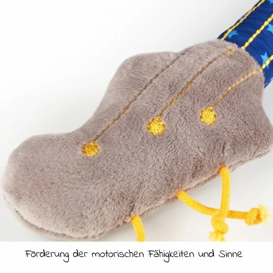Rockstarfeeling fΓΌr das Kinderzimmer! Der coole Rassel-Greifling Gitarre von Sigikid ist genau das richtige Spielzeug fΓΌr den Nachwuchs von Musikfans. Zieht Dein kleiner Rockstar am roten PlΓΌsch-Knopf, erweckt eine Virbrationsfunktion die Gitarre zum Leben und die intergrierte Rassel gibt lustige GerΓ€usche von sich. Alle Teile sind aus kuschelweichem Microfaserstoff gefertigt und lassen sich bequem im Schonwaschgang Deiner Maschine reinigen.