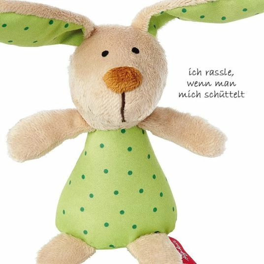 FΓΌr SpielspaΓ sorgt der Rassel-Greifling Hase von Sigikid. Der kleine Hase ist angenehm weich und sieht lustig aus. Die langen Ohren, das freundliche Gesicht und das lustige PΓΌnktchenmuster machen kleine Entdecker neugierig. Wenn Ihr Kind den Hasen schΓΌttelt, ertΓΆnen witzige Rassel-GerΓ€usche. Sie kΓΆnnen den Greifling ganz bequem bei 30Β° C in der Maschine waschen β so ist das Tierchen schnell wieder an der Seite Ihres Lieblings.
