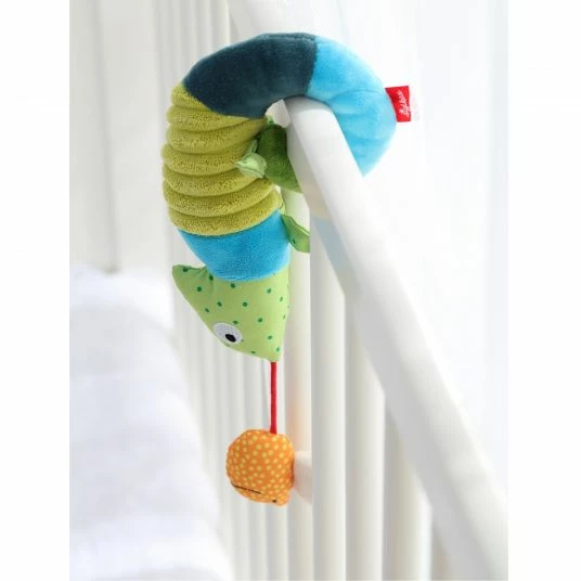 The animal Trailer for the chameleon infant carrier by Sigikid for fun on the go. The little animal is fixed at the rolled tail at the carrying handle of the baby car seat. Now it floats over your offspring and arouses the curiosity of your baby. The soft material stimulates to grasp, play and discover and the integrated rattle as well as the crackling paper make funny sounds. So your child will certainly not get bored and the best play friend is always on board.