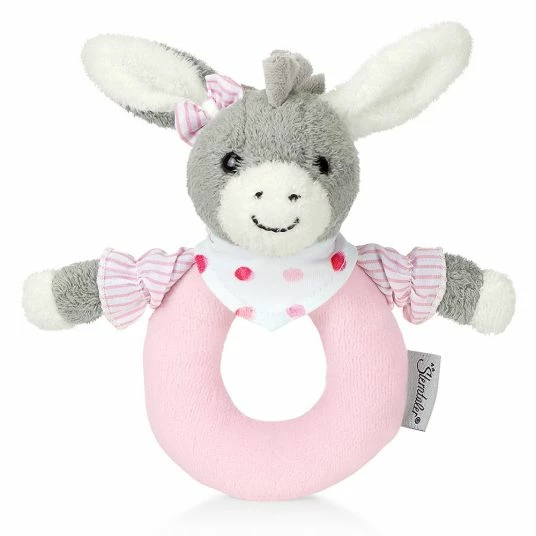 FΓΌfor the first pleasure the Rattle Emmi Girl from Sterntaler is the grasping object. The soft handrim can be held well by small children’s homes. The little donkey animates your baby to grab and play. The first motor skills are thus easily promoted. Different materials, colours and an integrated rattle arouse curiosity and provide exciting entertainment for the little ones. For cleaning you can simply put the handrim into the washing machine.