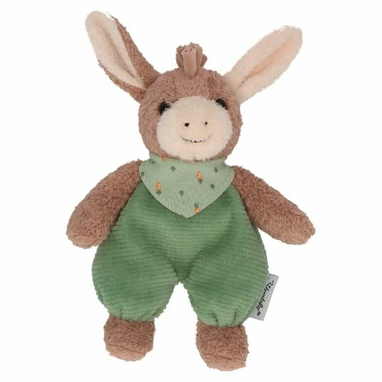Gleichzeitig bietet das Eselchen eine sinnvolle Beschäftigung: Die Rassel im Inneren fördert spielerisch das Gehör sowie die Motorik und motiviert zu Armbewegungen. Schöne Details wie die beiden verschiedenfarbigen Öhrchen, ein gemustertes Halstuch oder die süßen Knopfäuglein laden zum Greifen und Tasten ein.