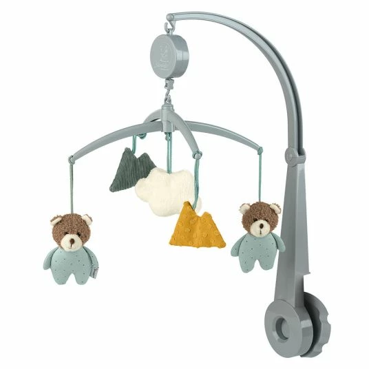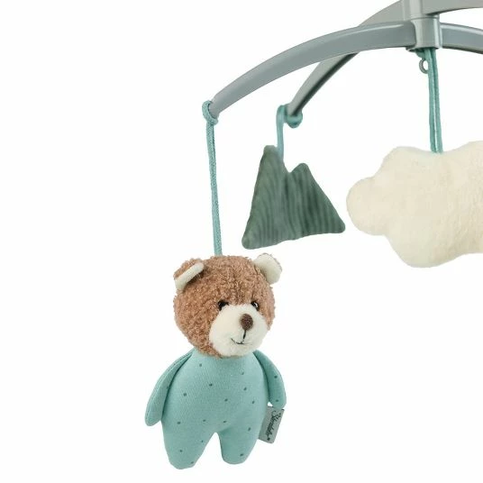 Das hübsche Musik-Mobile Bär Ben von Sterntaler wird Dein Baby verzaubern. Wenn Du die Spieluhr auf der Rückseite aufziehst, ertönt die Melodie LaLeLu… und die süßen Stofffiguren beginnen sich dazu zu drehen. Dank universellem Gestänge lässt sich das Mobile an allen Gitterbetten oder Laufgittern einfach und problemlos befestigen. Zur Reinigung kannst Du die Stofffiguren einfach in die Waschmaschine geben.