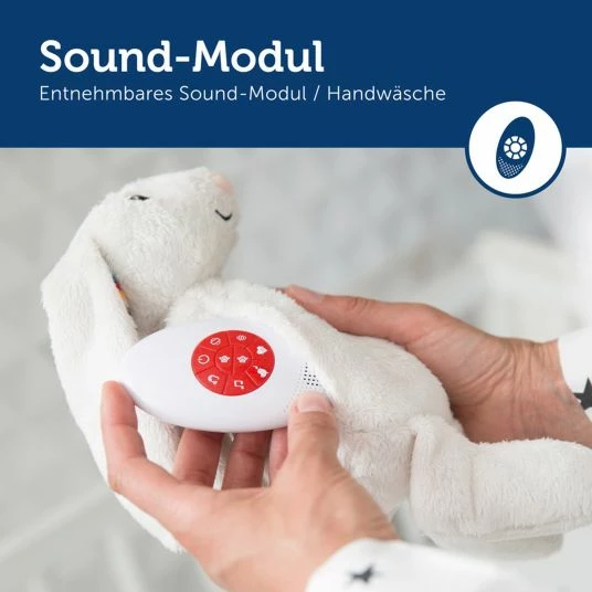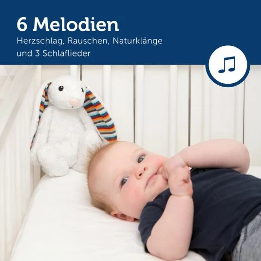 BIBI der Hase mit Herzschlag-Simulation von ZAZU begleitet Dein Babys mit 6 verschiedenen Melodien un 4 LaustΓ€rke-Einstellungen sanft in den Schlaf. WΓ€hle zwischen Herzschlag-GerΓ€uschen, Wasserfallrauschen, NaturgerΓ€uschen und 3 sanften Melodien. Einige dieser GerΓ€usche imitieren die Umgebung im Mutterleib und beruhigen so Dein Baby. Sehr praktisch: die automatische Abschaltung erfolgt nach 10 Minuten von ganz allein.